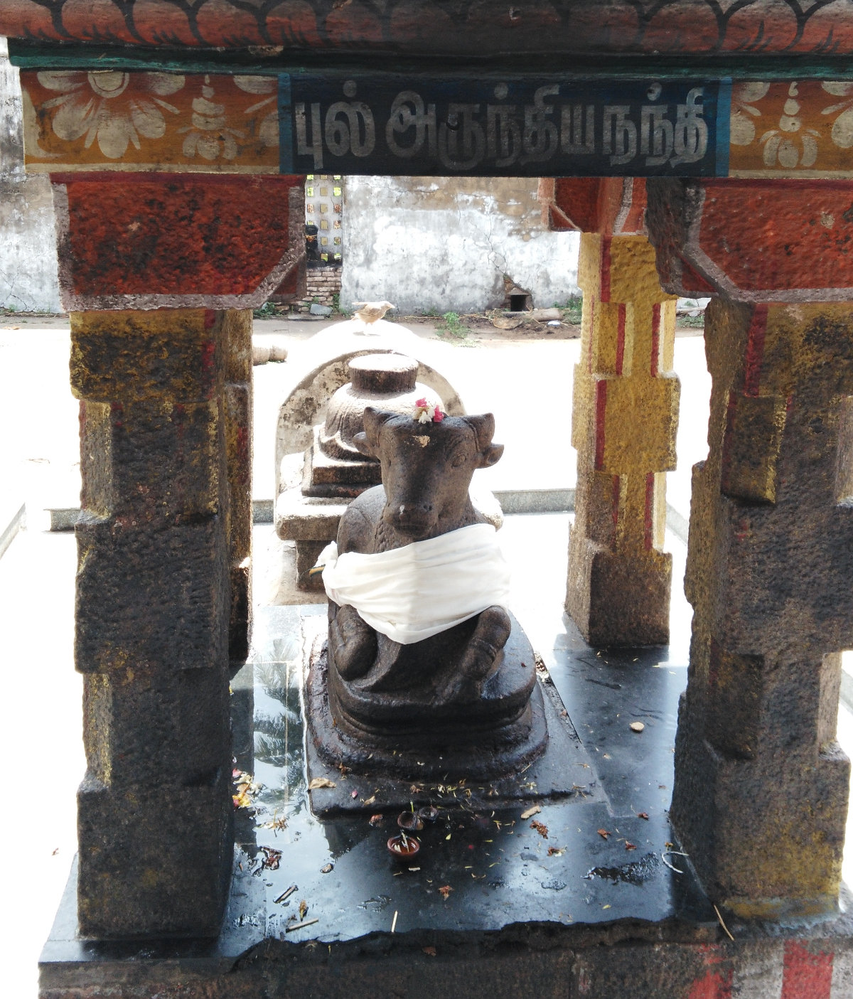 The idol of the stone Nandhi which is believed to have taken the grass from Haradhathar can also be seen here.