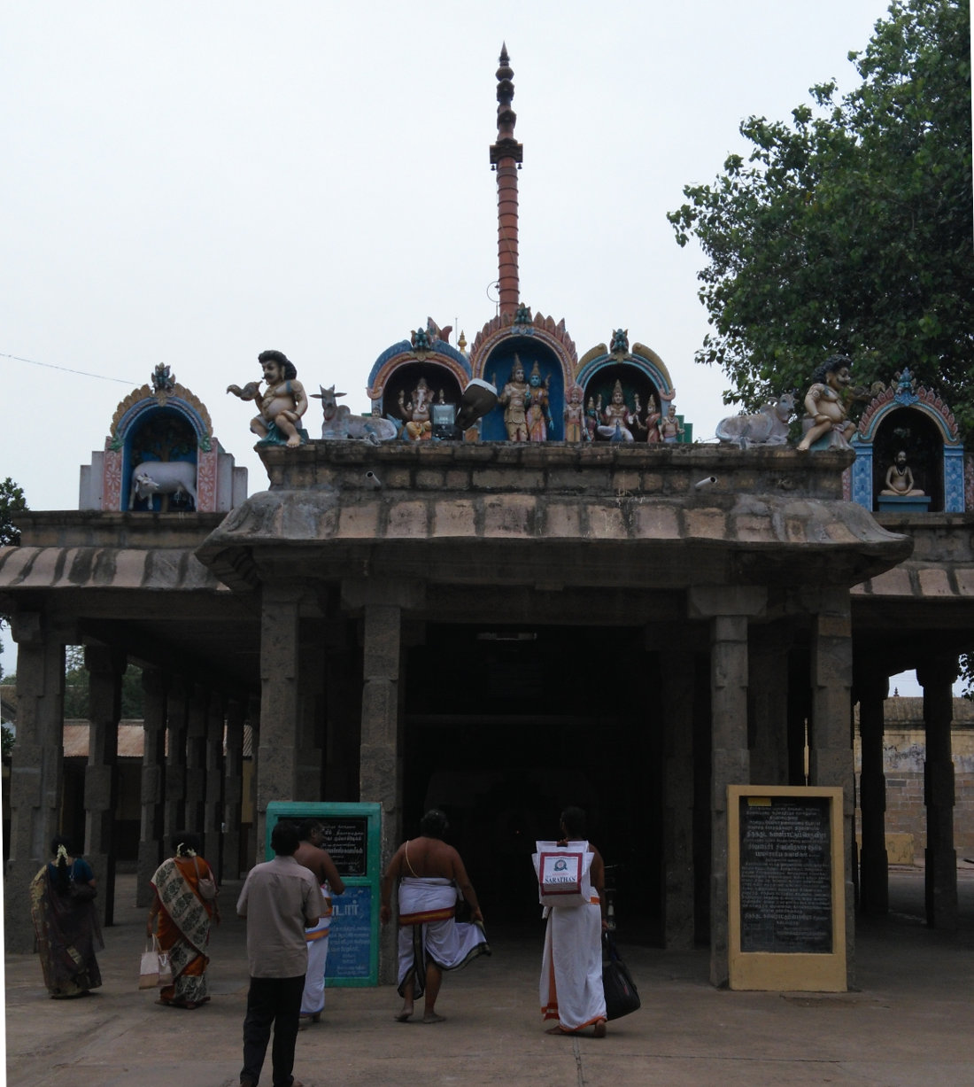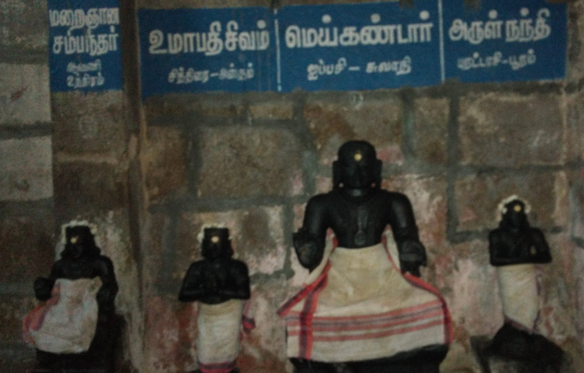 Other than the shrines of Lord Shiva and Goddess Parvathy, shrines and idols of lords Vinayakar, Murugan, Natarajar, Dakshinamurthy, Agasthiyar, Lingothbavar, Brahma, Vishnu, Durgai, Pancha Lingam, Chozha Lingam, Saneeswaran, Suryan, Chandiran, Bairavar, Harathatha Sivachariyar, Sarasvathi, Maraignanasambanthar, Umapathi Sivam, Meikandar, Arul Nandhi Sivam, 63, Nalvars and Adhi Gomuktheeswar can be seen in the corridors. There is no navagraham here.