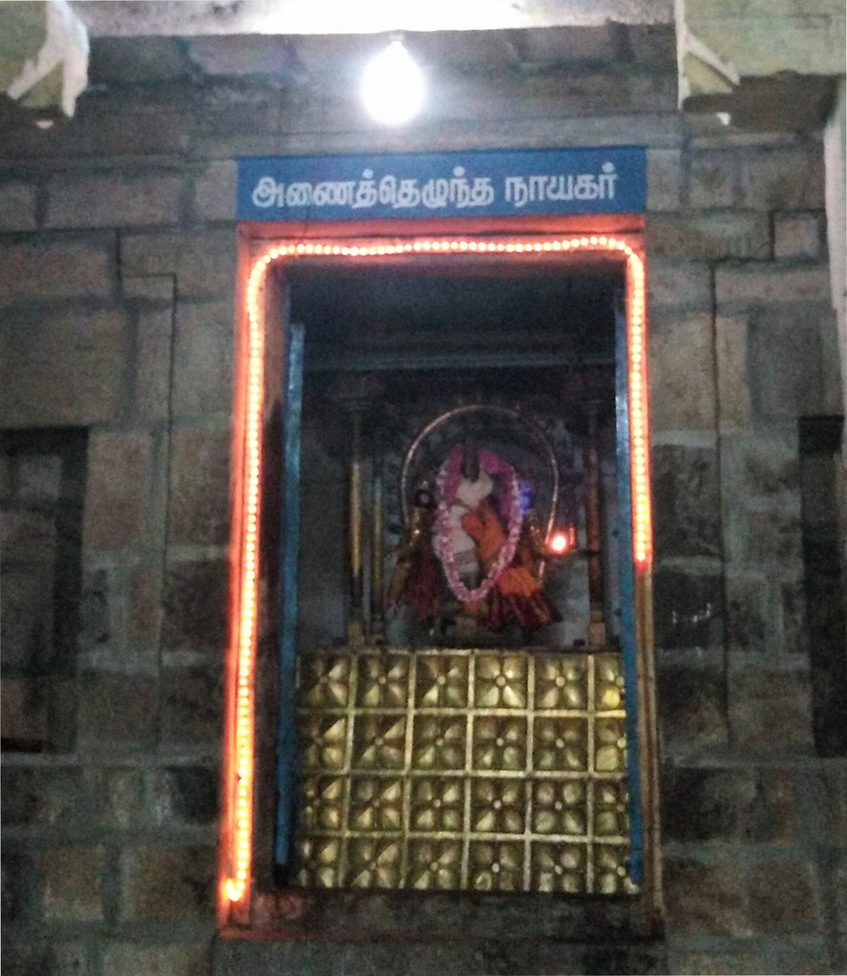 The procession idol of “Sri Anaiththezhundha Nayakar”, Adikara Nandhi, Pitchandavar, Sokkanathar, Mariyamman and Nalvar can be seen in the hall.