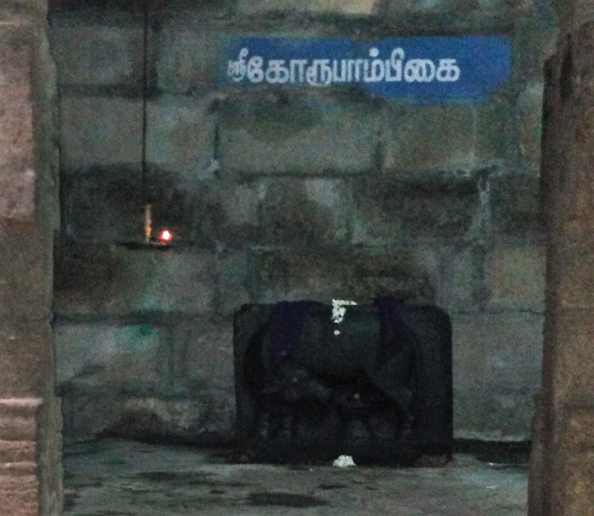 There is a statue in the corridor depicting the legend of Goddess Parvathy, in the form of a cow, performing abhishekam on a Shivlingam. This is known as “Sri Goroopambigai”.