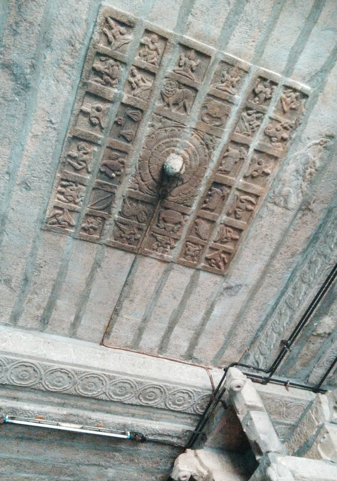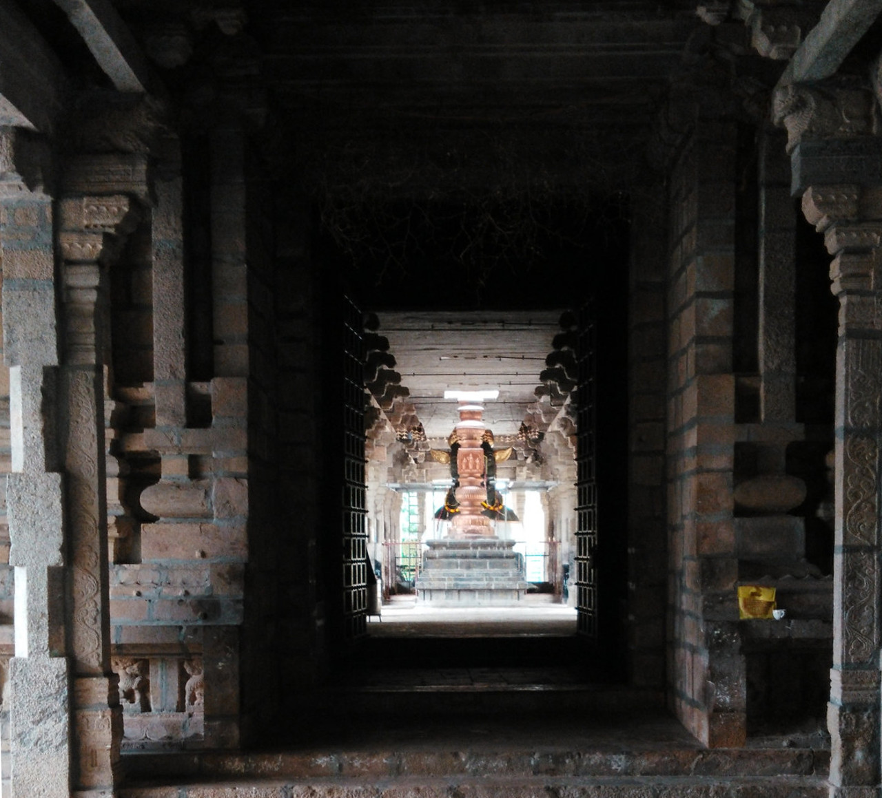 Beautiful stone reliefs of King Narasingan and his minister can be seen either side of the Nandhi Mandap.