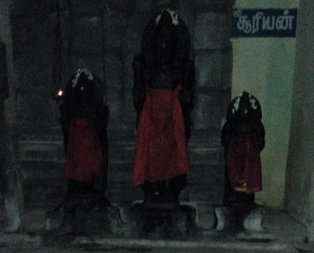 In the corridor, three idols of Lord Suryan are placed together. Getting such a darshan of Lord Suryan is very rare.