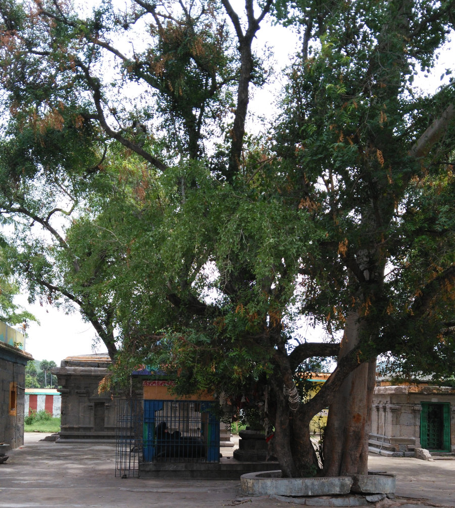 In the outer corridor, three trees - Vilva, Neem (Vembu) and Peepal (Arasu) are growing together and is believed to represent Lord Shiva, Goddess Parvathi and Lord Vinayaka. It is a common belief amongst devotees that worshipping these trees will ensure unity in the family and those separated will get re-united.