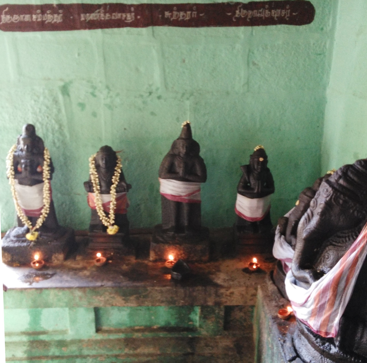 Other than the shrines of Lord Shiva and Goddess Parvathy, shrines and idols of Valanchuzhi Vinayakar, Murugan, Natarajar, Sage Agasthiyar, Nalvar, Esana Murthy, Gajalakshmi, Ram, Sita, Lakshman, Anjaneyar, Suryan and Kala Bairavar can be seen in the corridors.