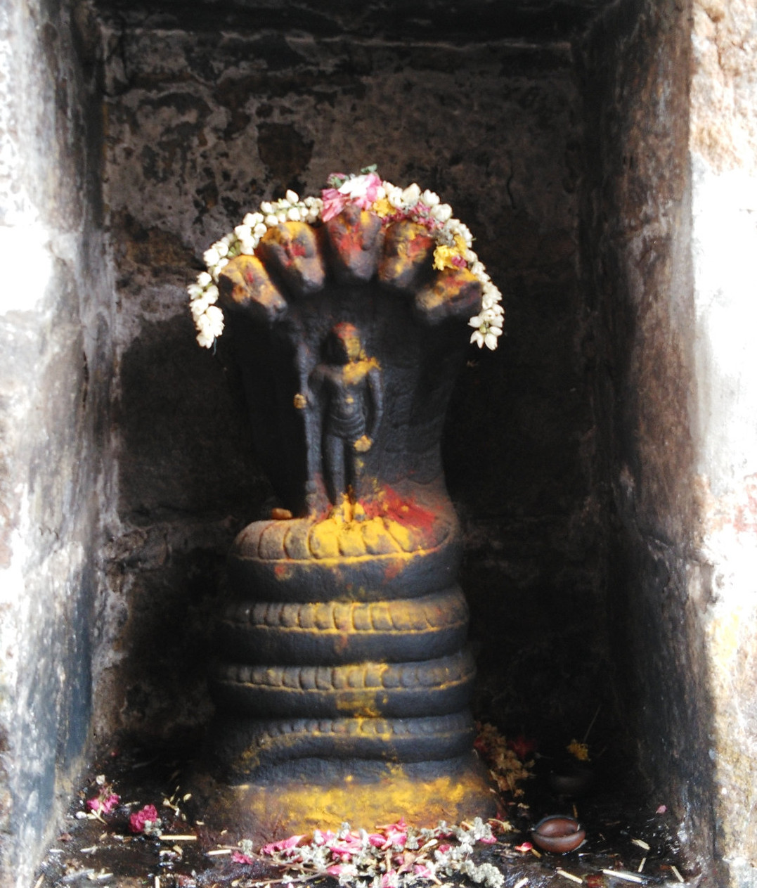 One of the legends of Hindu mythology states that the serpent king Adhisheshan (Naga Raj, the king of serpent) holds the earth in its place. Once he was tired and was unable to hold the earth. He pleaded to Lord Shiva to give him enough strength to continue doing his job. Lord Shiva advised him to go to earth and worship him at this temple in Kumbakonam. The lord further advised him that he would get the energy to hold the earth with a single head instead of having 1000 heads. He installed a Shivalingam here and worshipped the lord. As Nagaraja worshipped the lord here, the lord is praised as Sri Nageswarar.