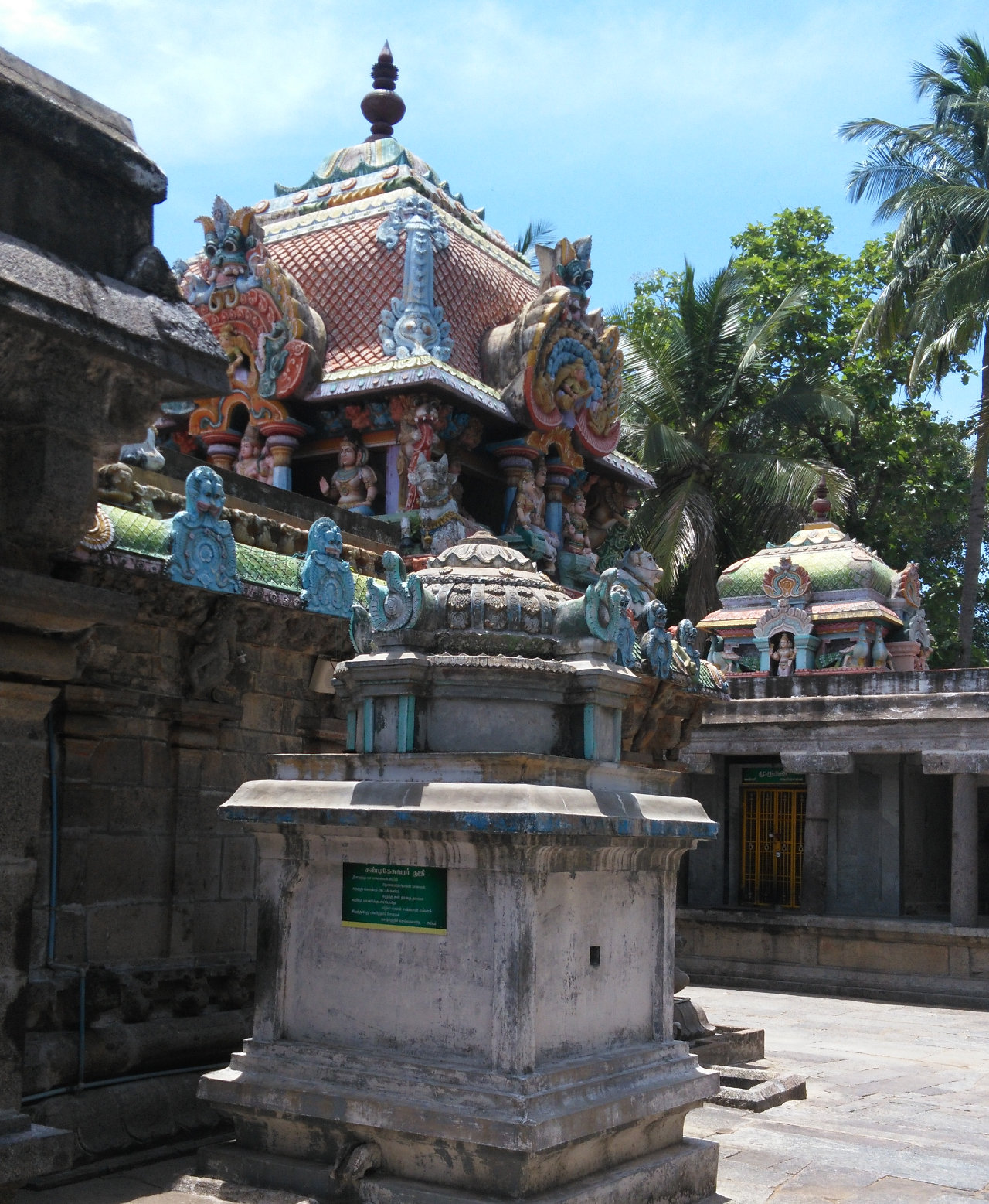 In the corridors, there are Shiva lingams that are believed to have been worshipped by Lord Mahavishnu in Kirutha yugam, Chandikeswarar in Thretha yugam, Lord Brahma in Dwabara yugam, and Saint Sundarar in Kali yugam.