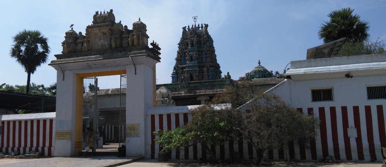 - This is an east facing temple and it has an arch type entrance with two corridors. There is no main tower (Rajagopuram) in this temple.