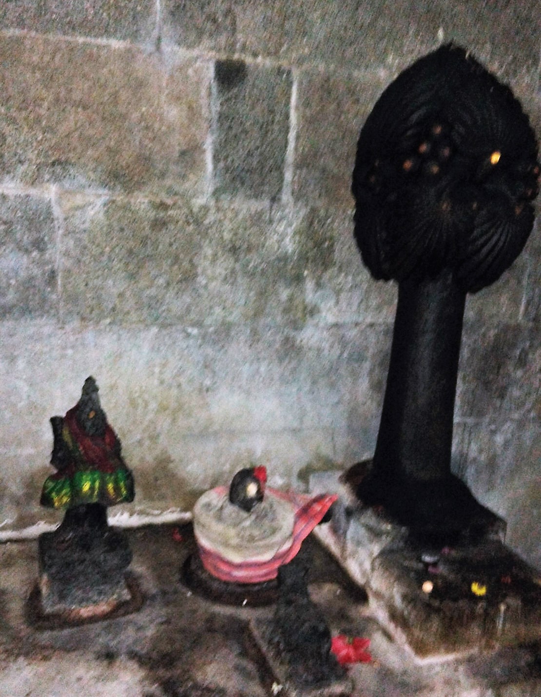 Since there are two lingams in this temple, this temple also has two separate sets of Nandhi, Pali Peedam (altar for making offerings) and flag post (dwajasthambam). Similarly, in both the outer sanctums, separate idols of lords Dakshinamurthy, Mahavishnu and Brahma can be seen.