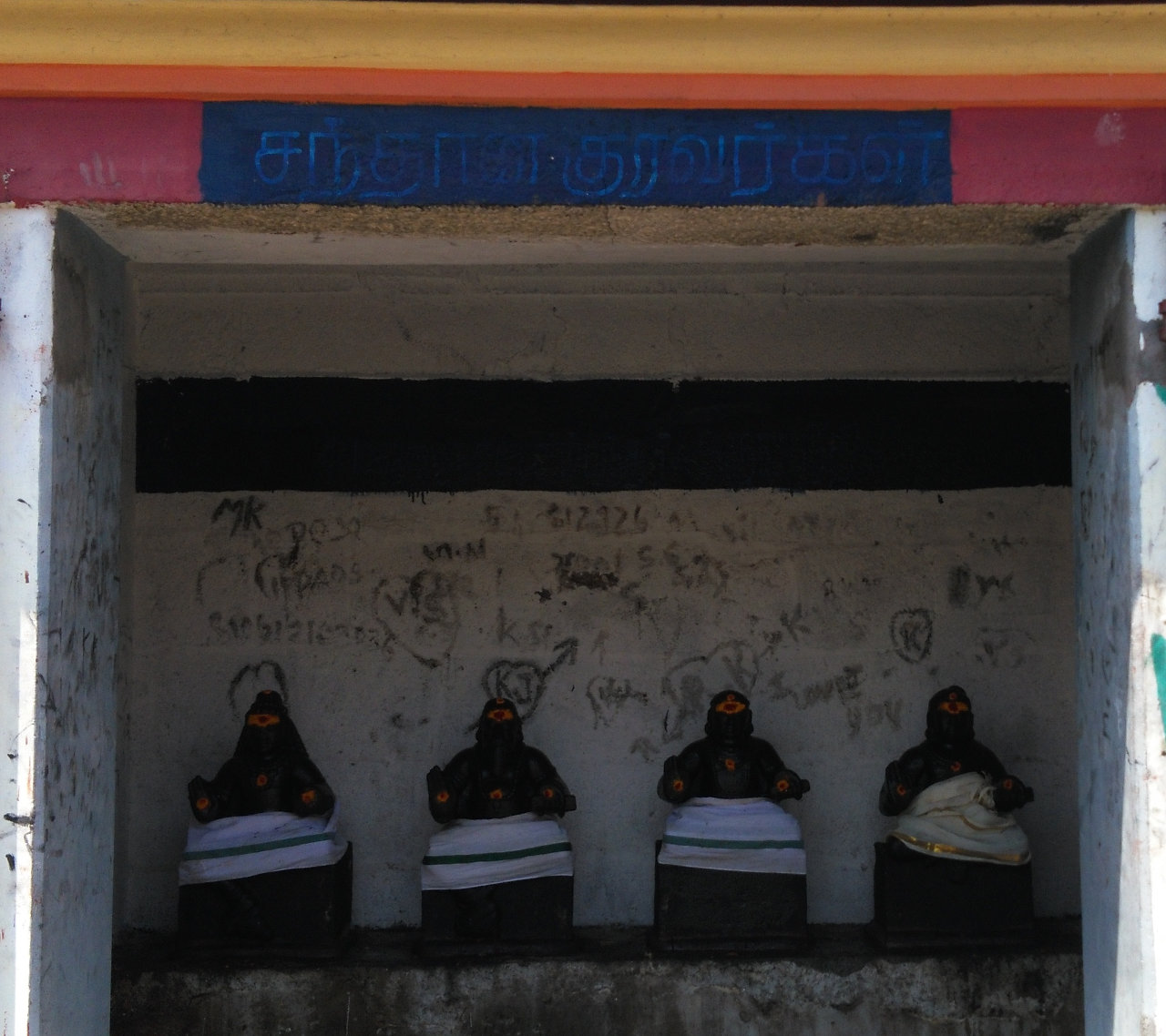 There is a separate shrine in the corridor where the idols of Santhana Kuravarkal – Meikandar, Arunandhi Sivam, Maraignana Sambanthar and Umapathi Sivam, can be seen.