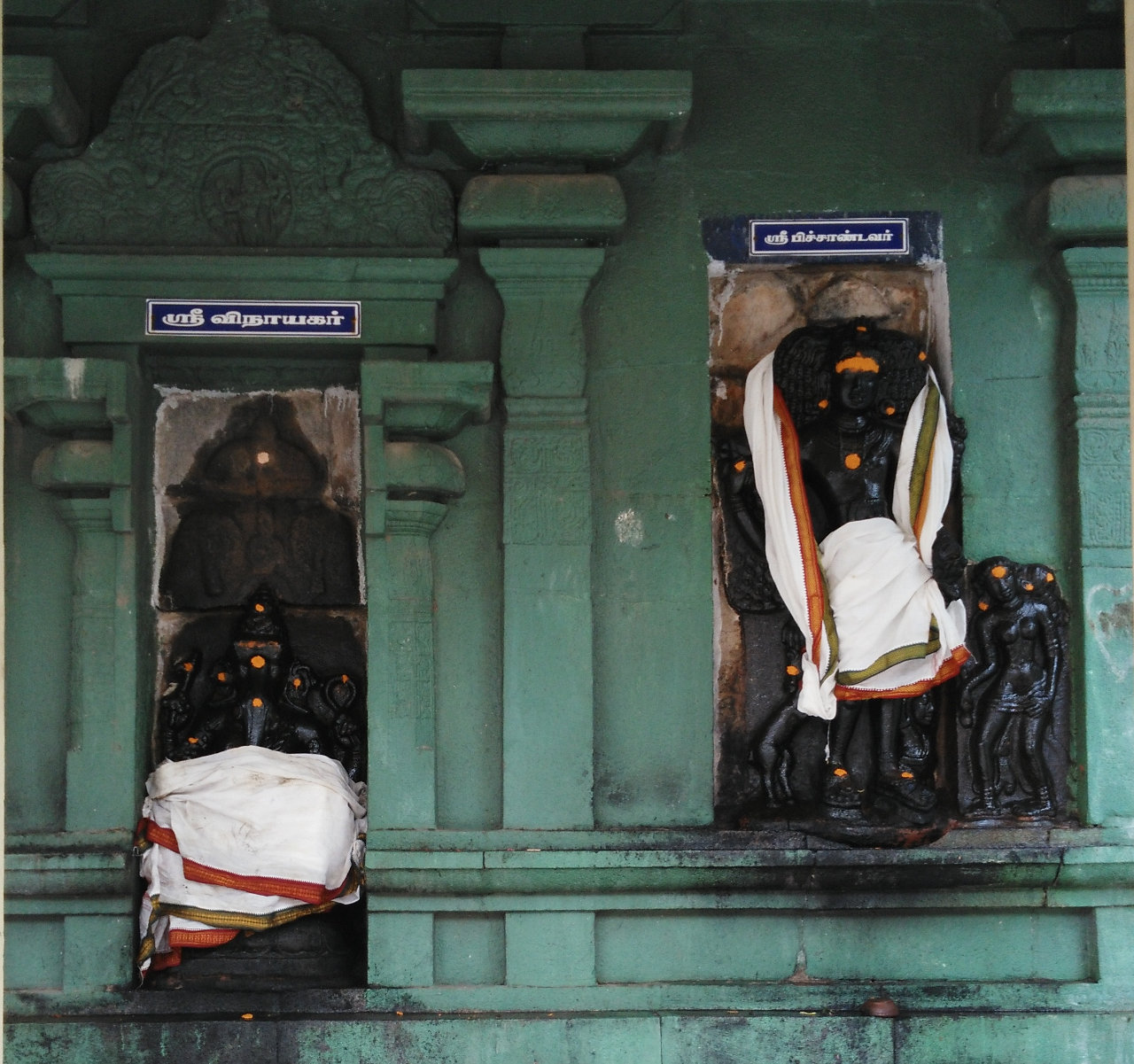 Shrines and idols of Lords Valanchuzhi Vinayakar, Vinayakar, Murugan with his consorts, Dakshinamurthy, Veerabathrar, Suryan, Chandran, Natarajar,