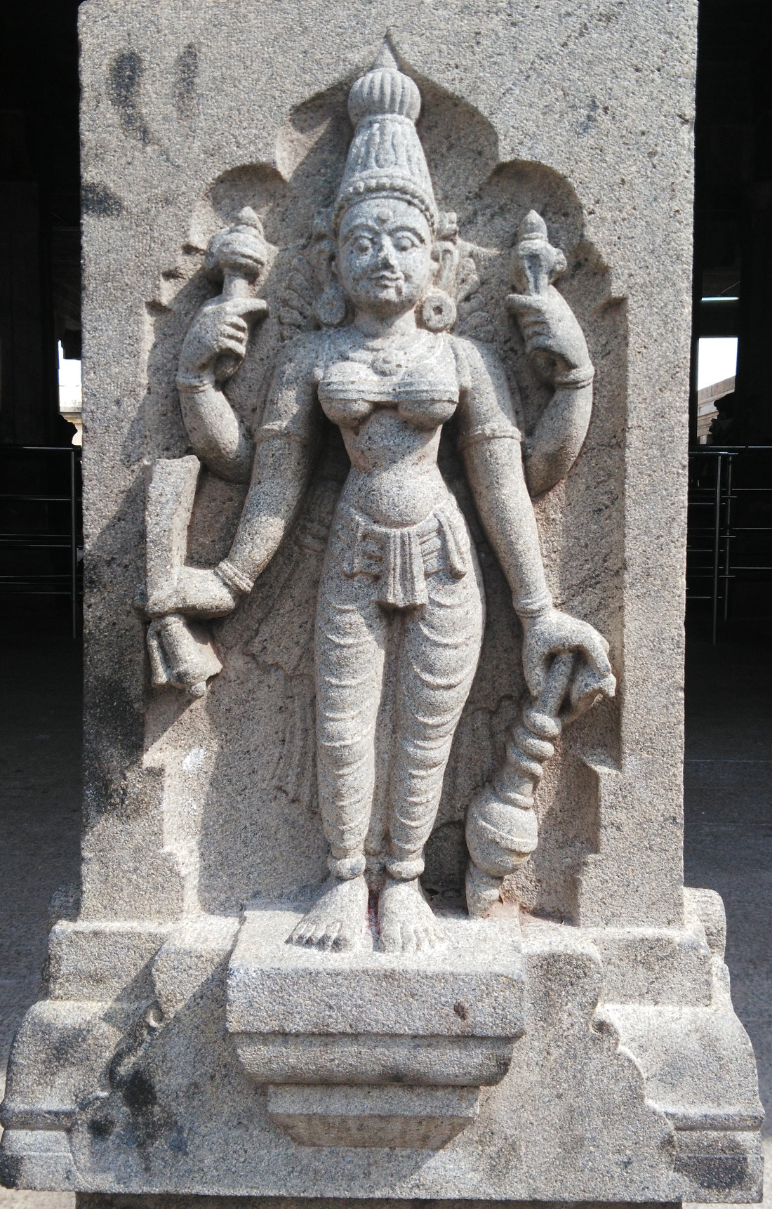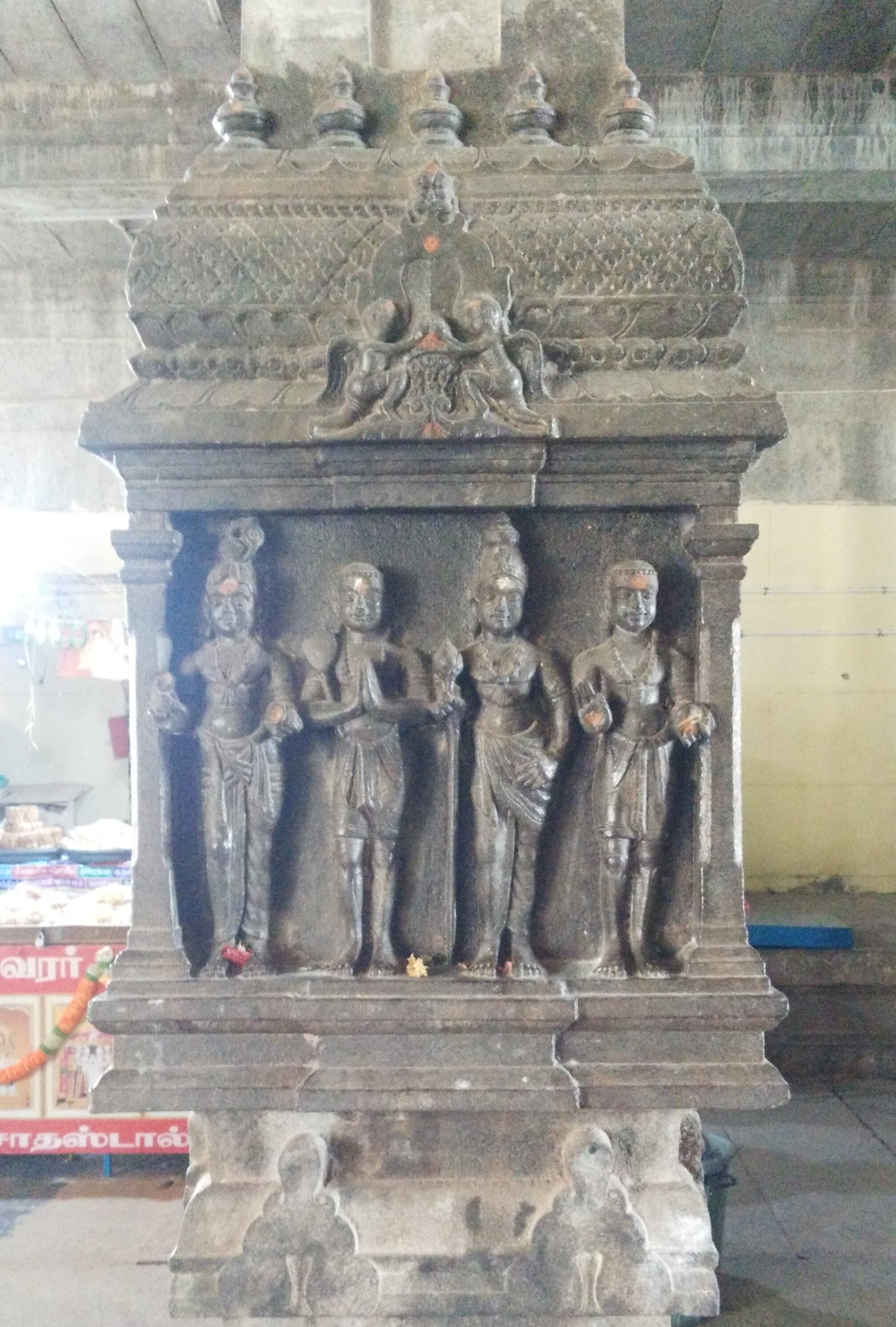 There are many beautiful granite reliefs that are artistically carved in the pillars such as those of the Nalvars, Lord Shiva and Goddess Parvathy seated on the bull mount, lord Vinayakar, lord Murugan, etc.