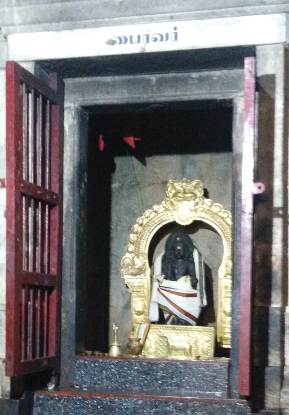 In the “koshtam” (place surrounding the sanctum sanctorum), idols of Narthana Ganapathy, Dakshinamurthy, Lingothbavar, Brahma and Durgai can be seen.